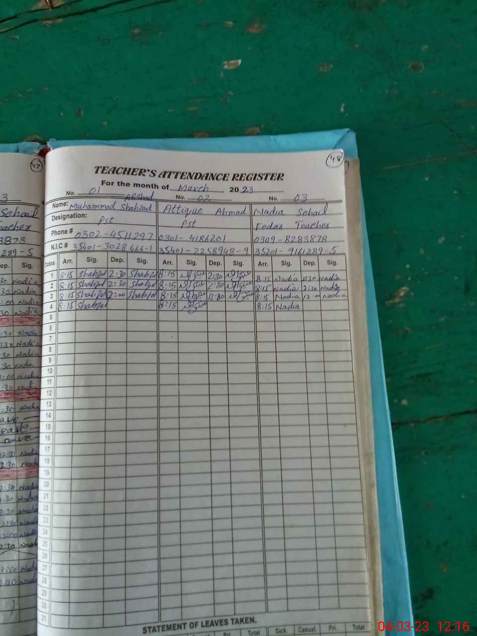 | Name: MU**** SH**** Designation: (School Headmaster's/Headmistress's) PST Phone/Cell Number: 03**** |