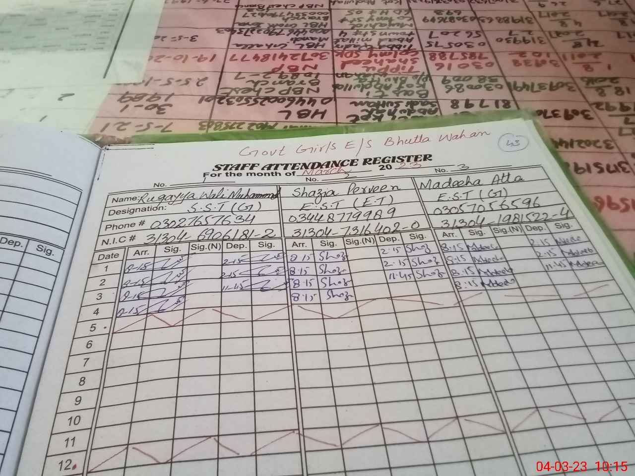 | Name: Sh**** Pe**** Designation: (School Headmaster's/Headmistress's) EST Phone/Cell Number: 03**** |