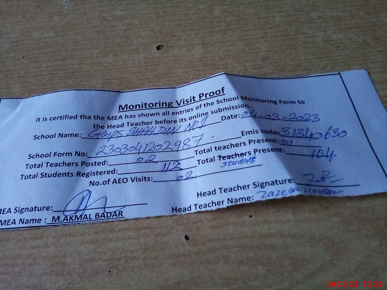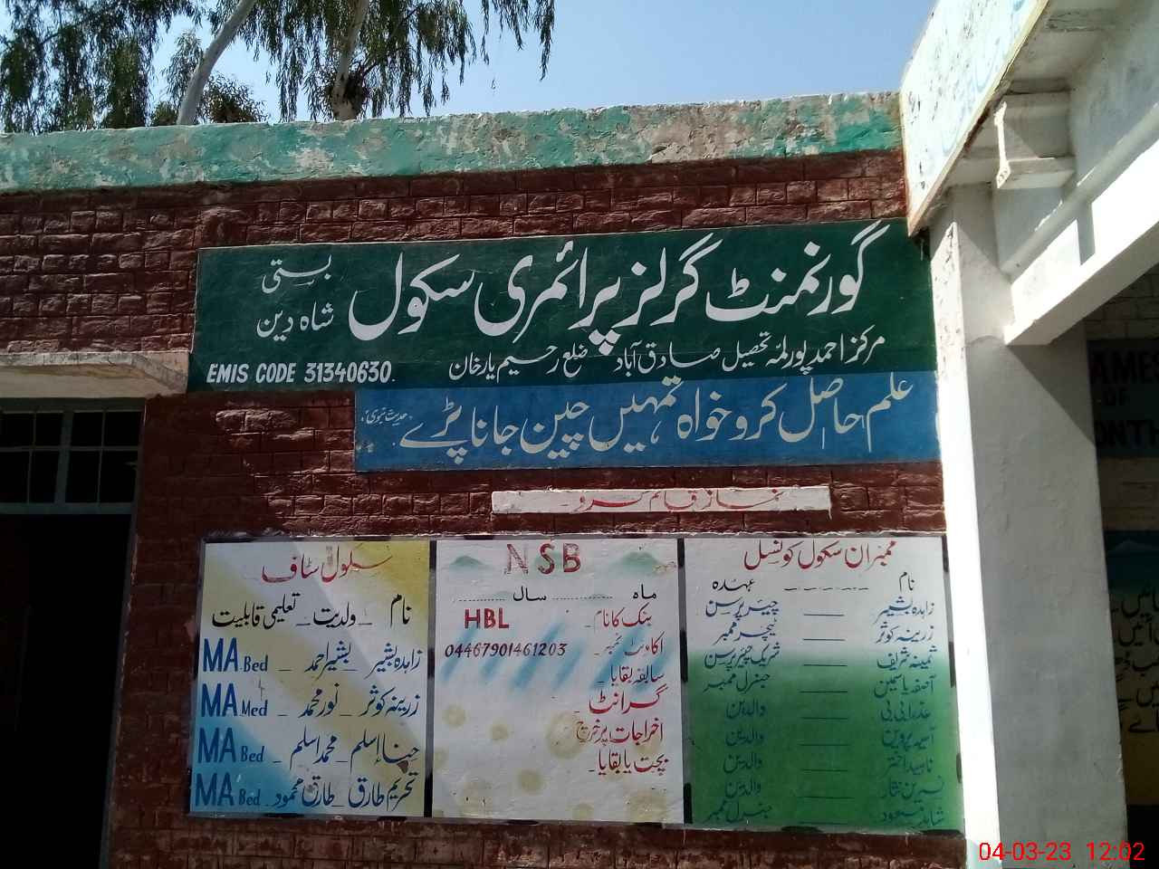 | EMIS Code: 31340630 | Name of School: GGPS SHAH DIN NO.1 | |||