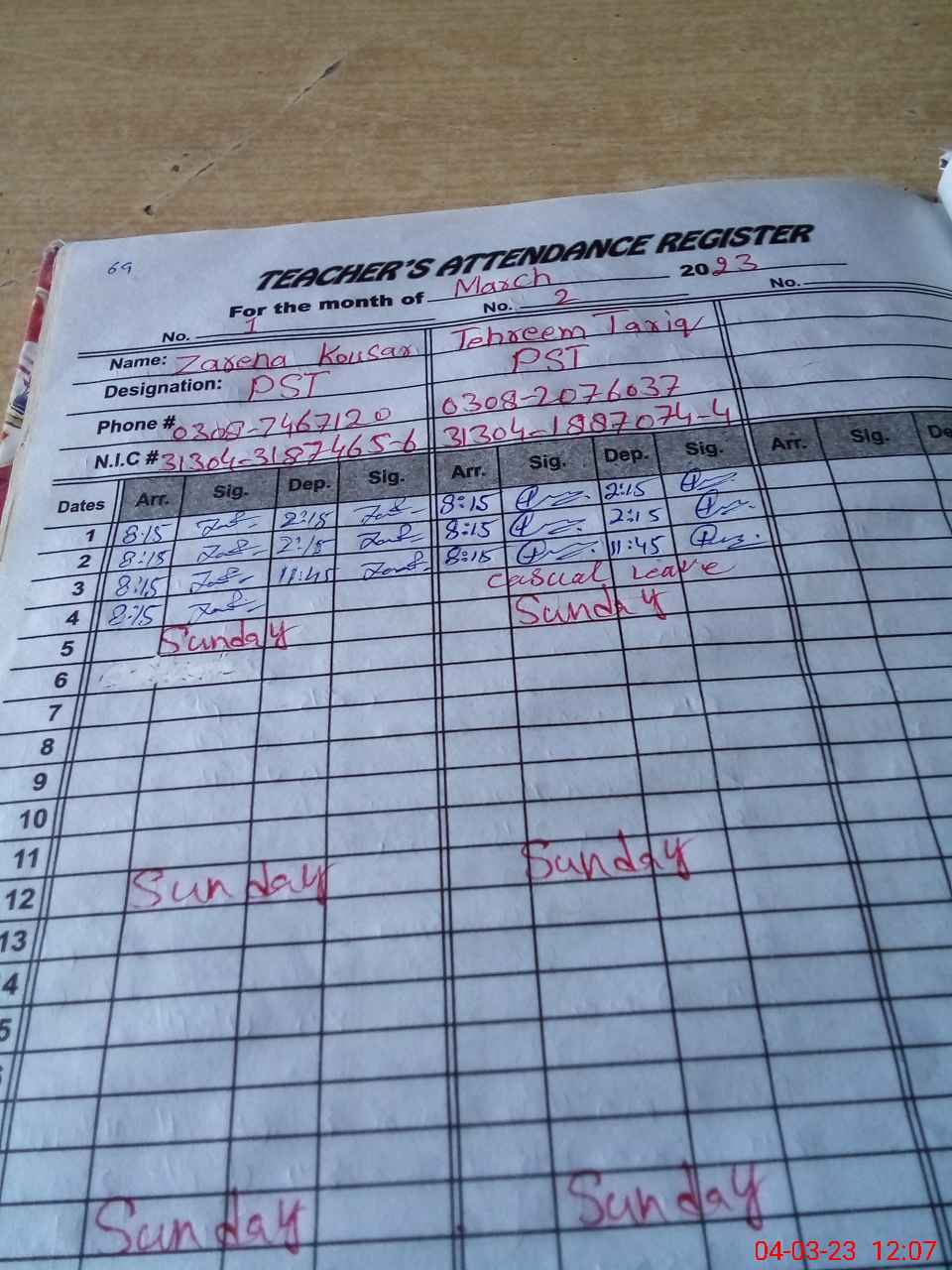 | Name: Za**** Ko**** Designation: (School Headmaster's/Headmistress's) PST Phone/Cell Number: 03**** |