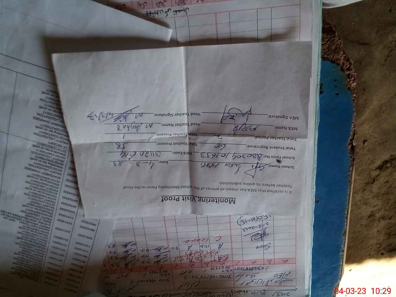 | Attendance Register | Head Teacher | MEA with School | Visit Proof |
