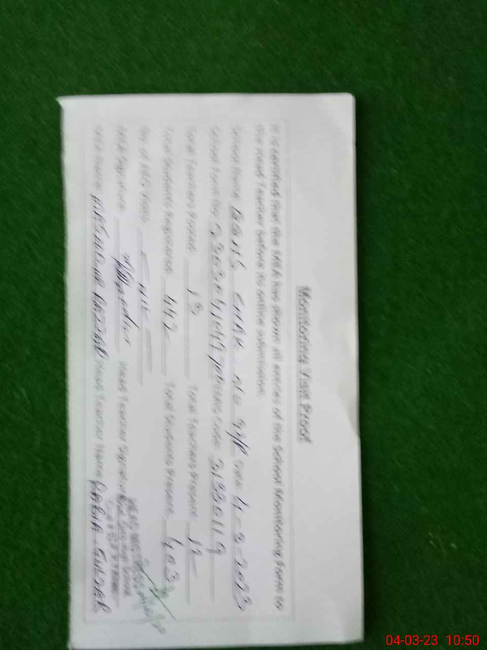 | Monitoring Date: 04-03-2023 | Start Time: 04-03-2023 10:01 AM | End Time: 04-03-2023 10:50 AM | Name of MEA: Ma**** UrRa**** | |