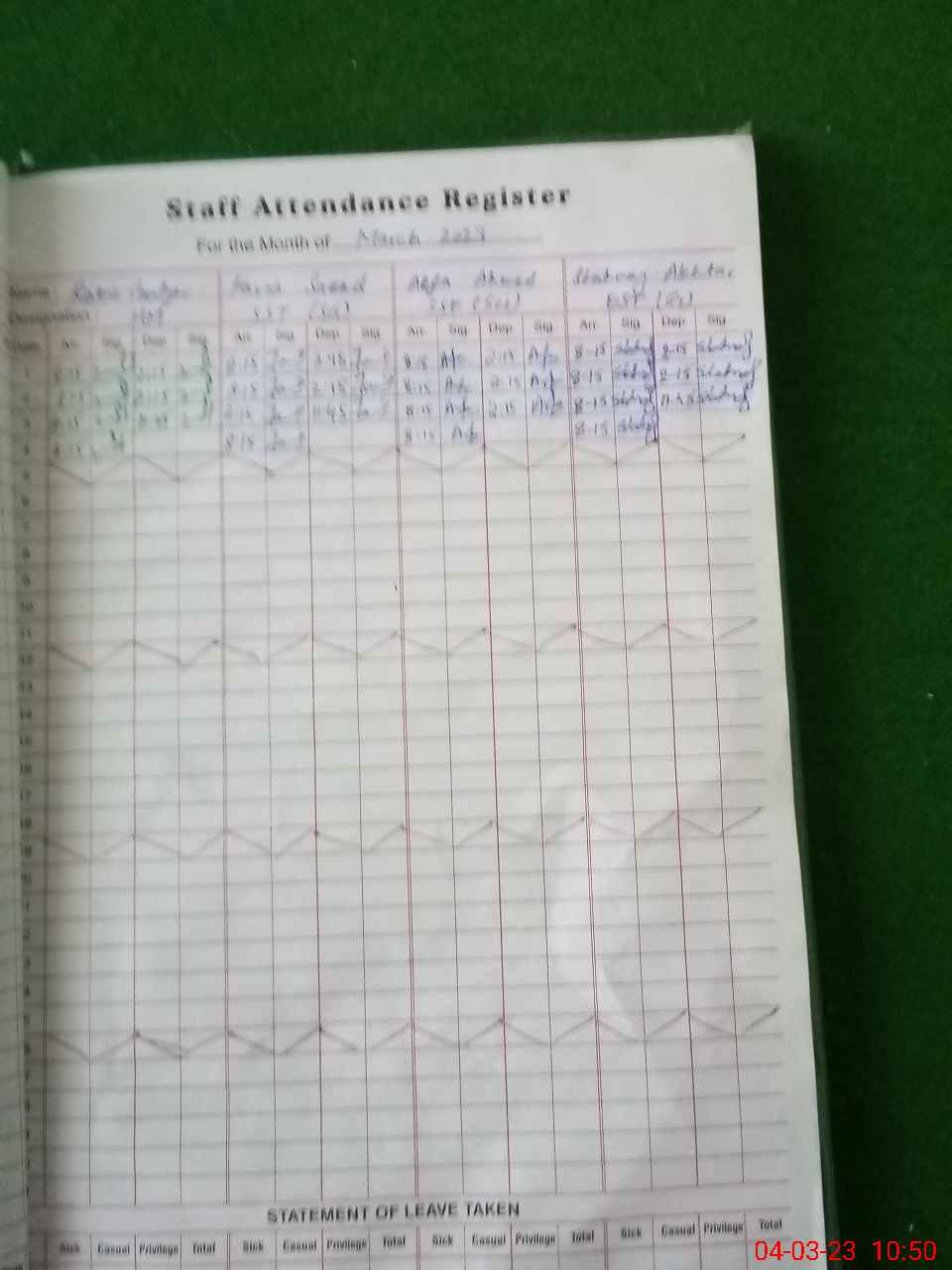 | Leave | Duty | Absent | Maternity | Medical | Ex- Pak |