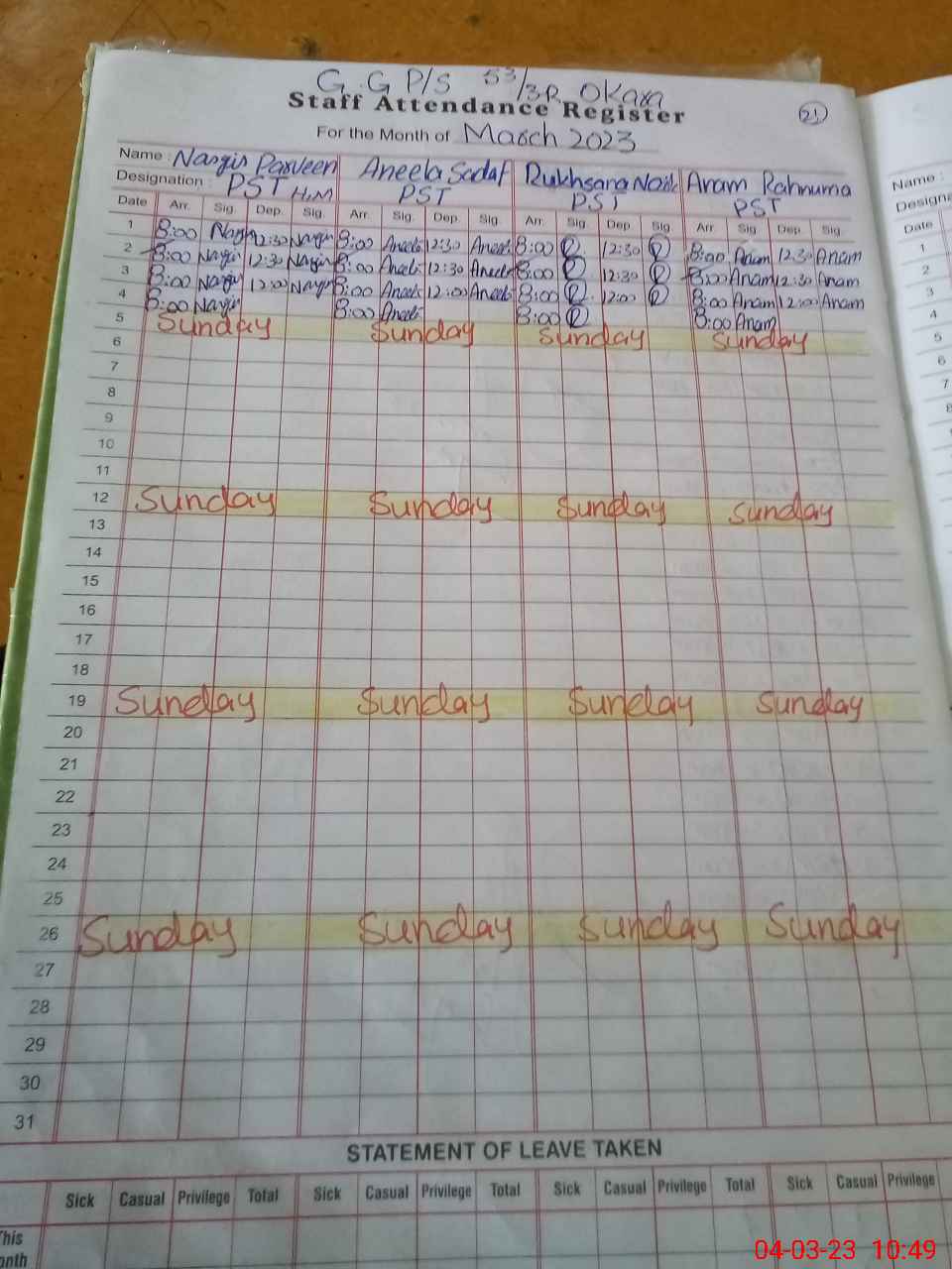 | Name: An**** Ra**** Designation: (School Headmaster's/Headmistress's) PST Phone/Cell Number: 03**** |