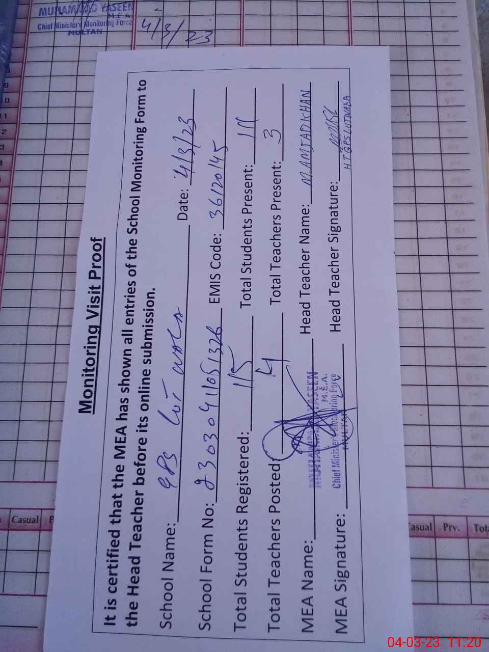 | EMIS Code: 36120145 | Name of School: GPS LUT WALA P/O KHOJA SHUJABAD | |||