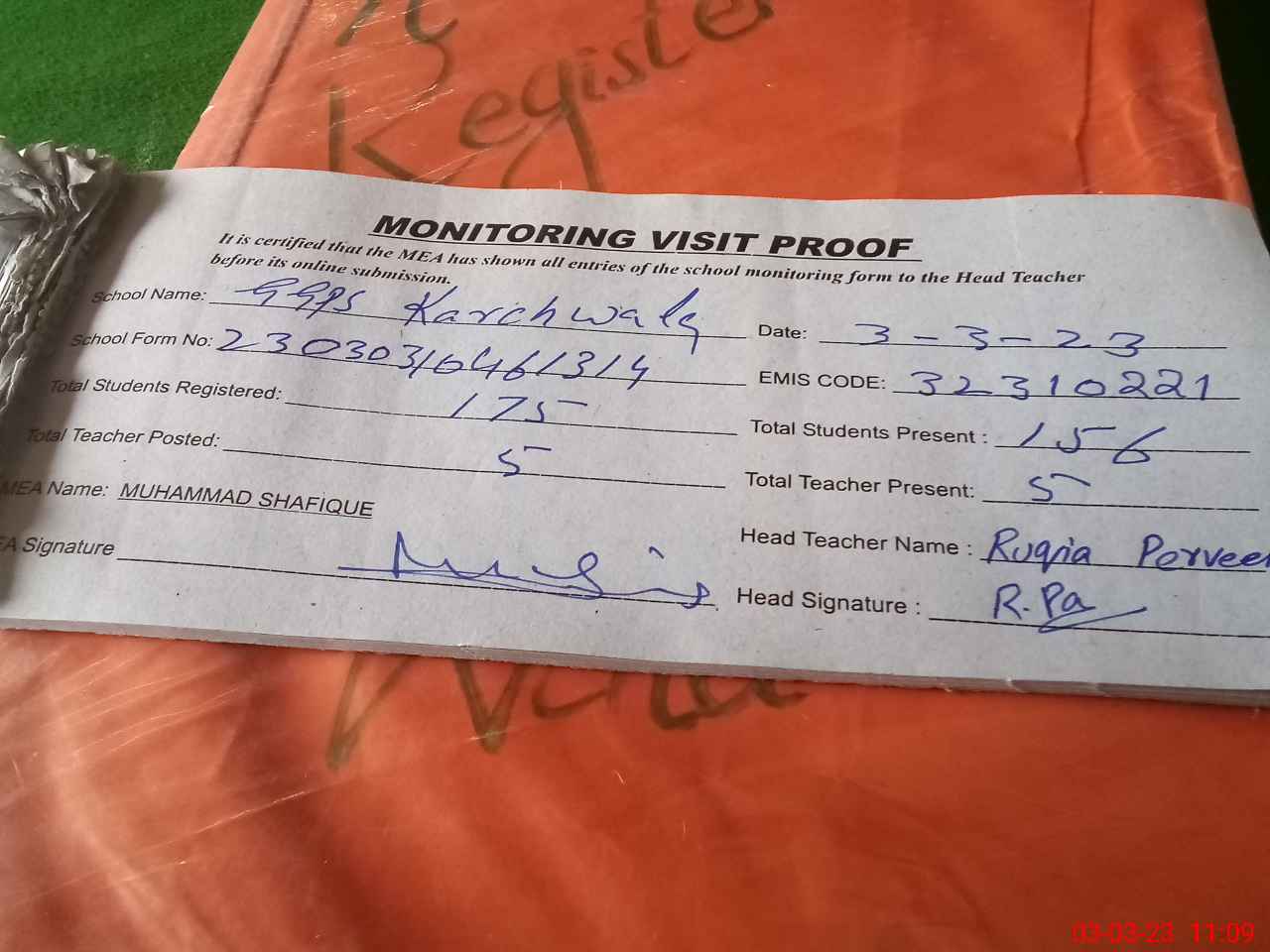 | EMIS Code: 32310221 | Name of School: GGPS KARCH WALA | |||