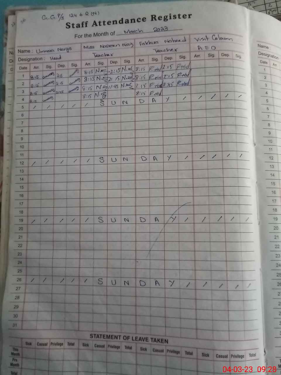| Leave | Duty | Absent | Maternity | Medical | Ex- Pak |