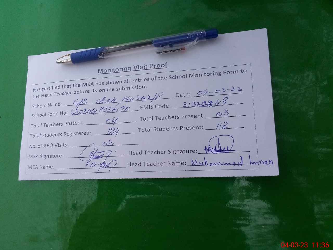 | EMIS Code: 31330249 | Name of School: GPS CHAK 242/P | |||