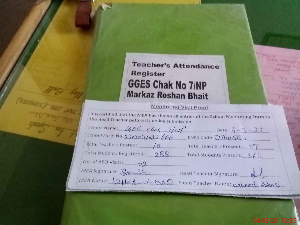 | EMIS Code: 31340584 | Name of School: GGES CHAK NO.7/NP | |||