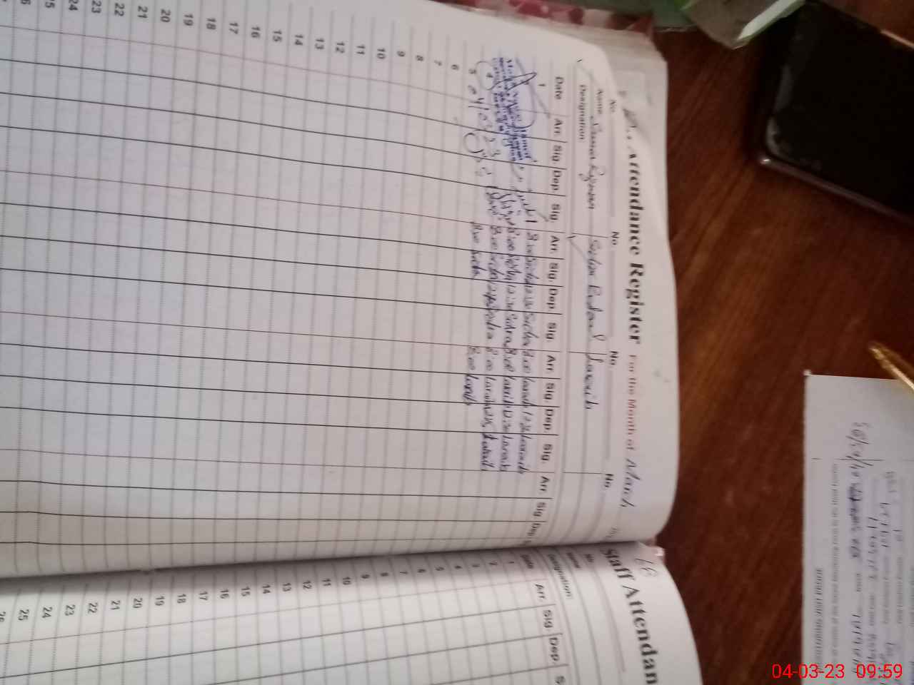 | CNIC | Full Name | Designation | R/C | Absence During Last Calender Month |