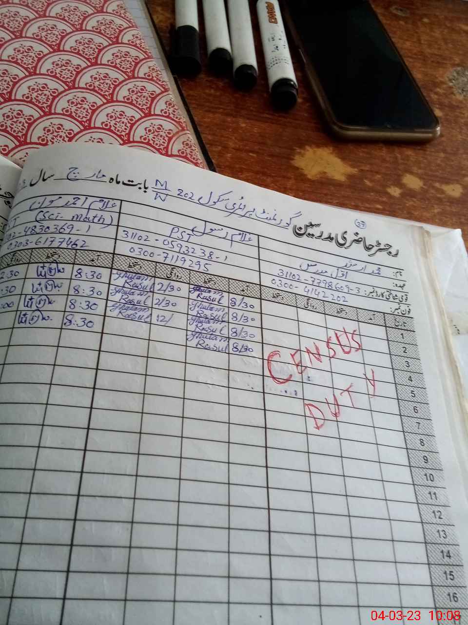 | Name: Gh**** Ra**** Designation: (School Headmaster's/Headmistress's) PST Phone/Cell Number: 03**** |
