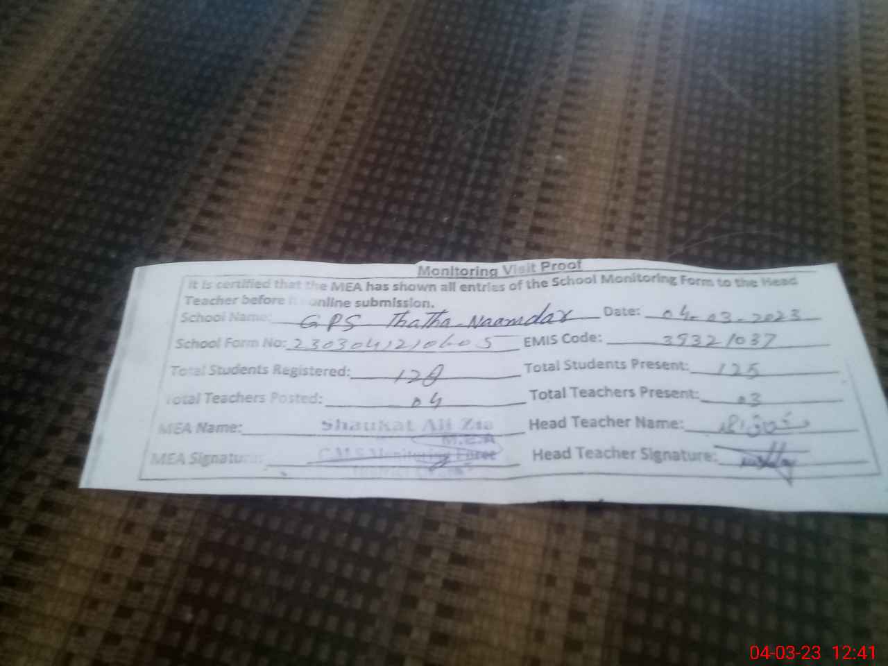 | EMIS Code: 39321037 | Name of School: GPS THATHA NAAM DAR | |||