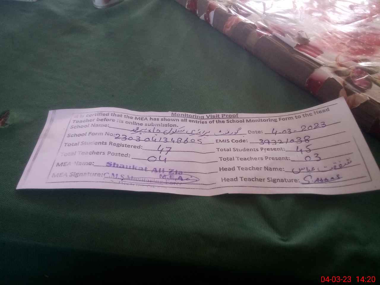 | EMIS Code: 39321038 | Name of School: GPS CHAH PIR MUHAMMAD | |||
