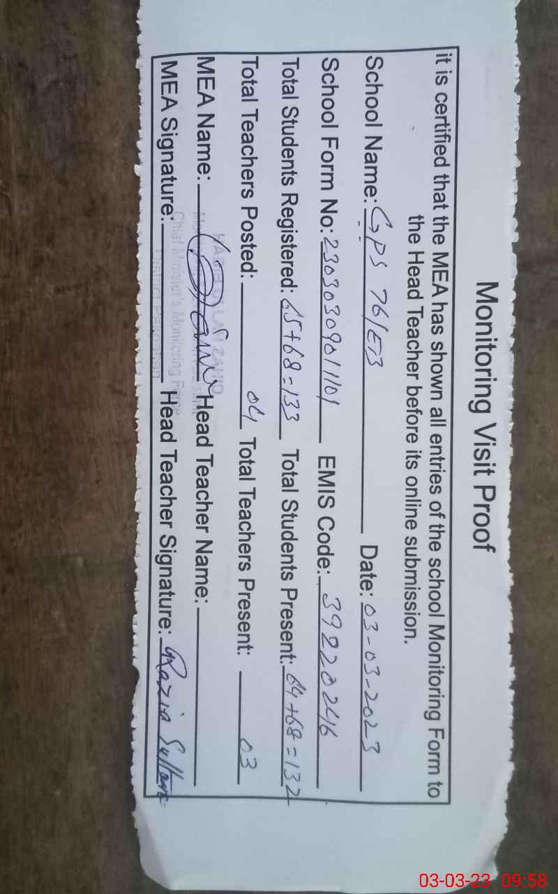 | EMIS Code: 39220246 | Name of School: GPS 76 EB | |||