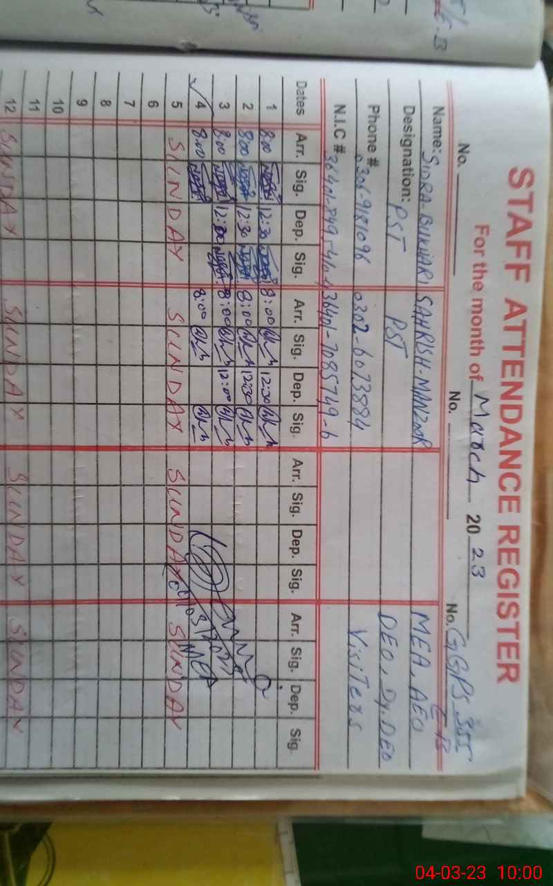 | Name: SE**** MA**** Designation: (School Headmaster's/Headmistress's) PST Phone/Cell Number: 03**** |