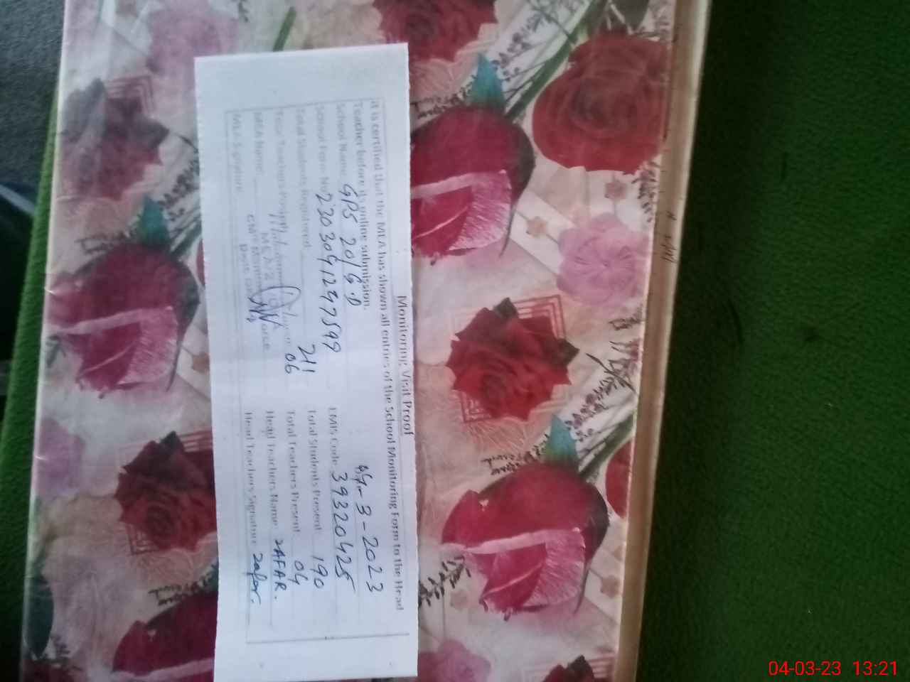 | EMIS Code: 39320425 | Name of School: GPS CHAK NO. 20/G.D | |||