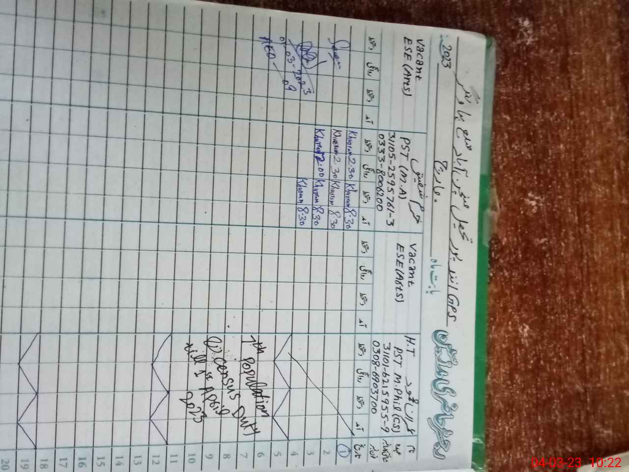 | Name: Im**** Me**** Designation: (School Headmaster's/Headmistress's) PST Phone/Cell Number: 03**** |