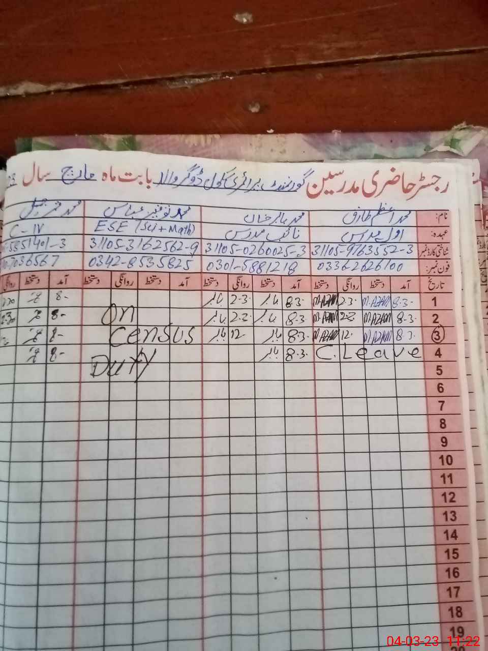 | Name: Mu**** Az**** Ta**** Designation: (School Headmaster's/Headmistress's) PST Phone/Cell Number: 03**** |