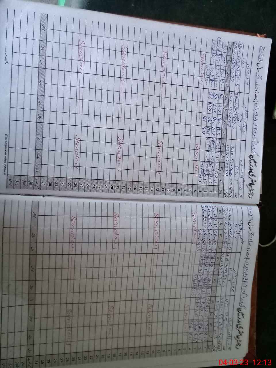 | CNIC | Full Name | Designation | R/C | Absence During Last Calender Month |