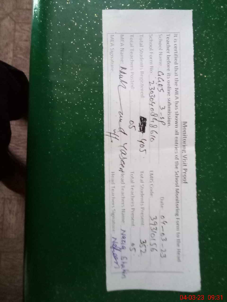 | EMIS Code: 39310156 | Name of School: GGES CHAK 3/S.P | |||