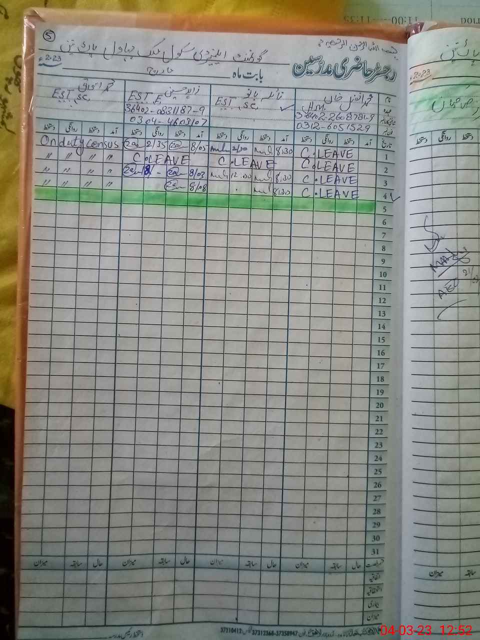 | Name: MU**** AF**** KH**** Designation: (School Headmaster's/Headmistress's) SST (GENERAL) Phone/Cell Number: 03**** |