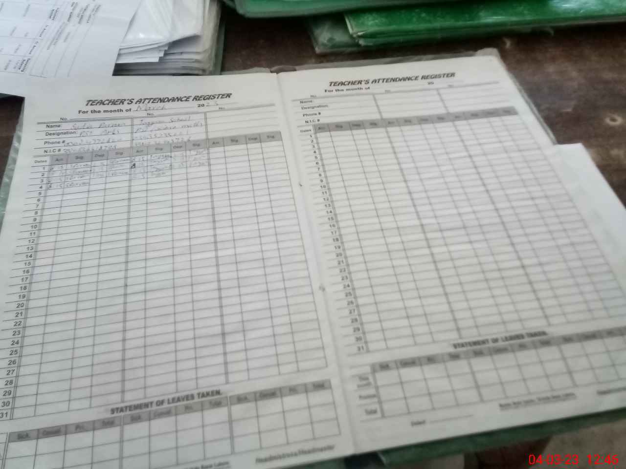 | Name: SA**** PA**** Designation: (School Headmaster's/Headmistress's) PST Phone/Cell Number: 03**** |