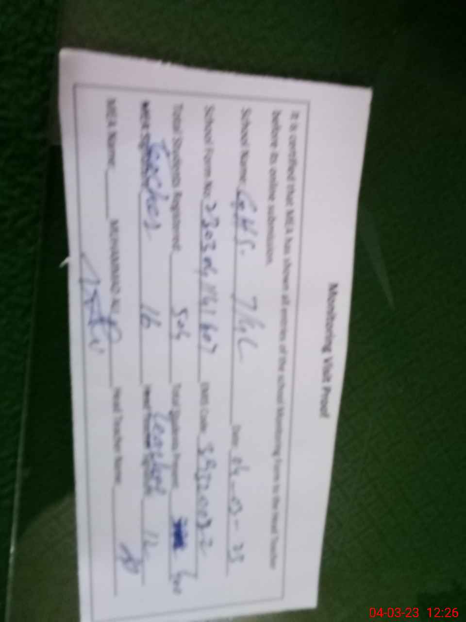 | Monitoring Date: 04-03-2023 | Start Time: 04-03-2023 11:41 AM | End Time: 04-03-2023 12:30 PM | Name of MEA: MO**** AL**** (R**** | |