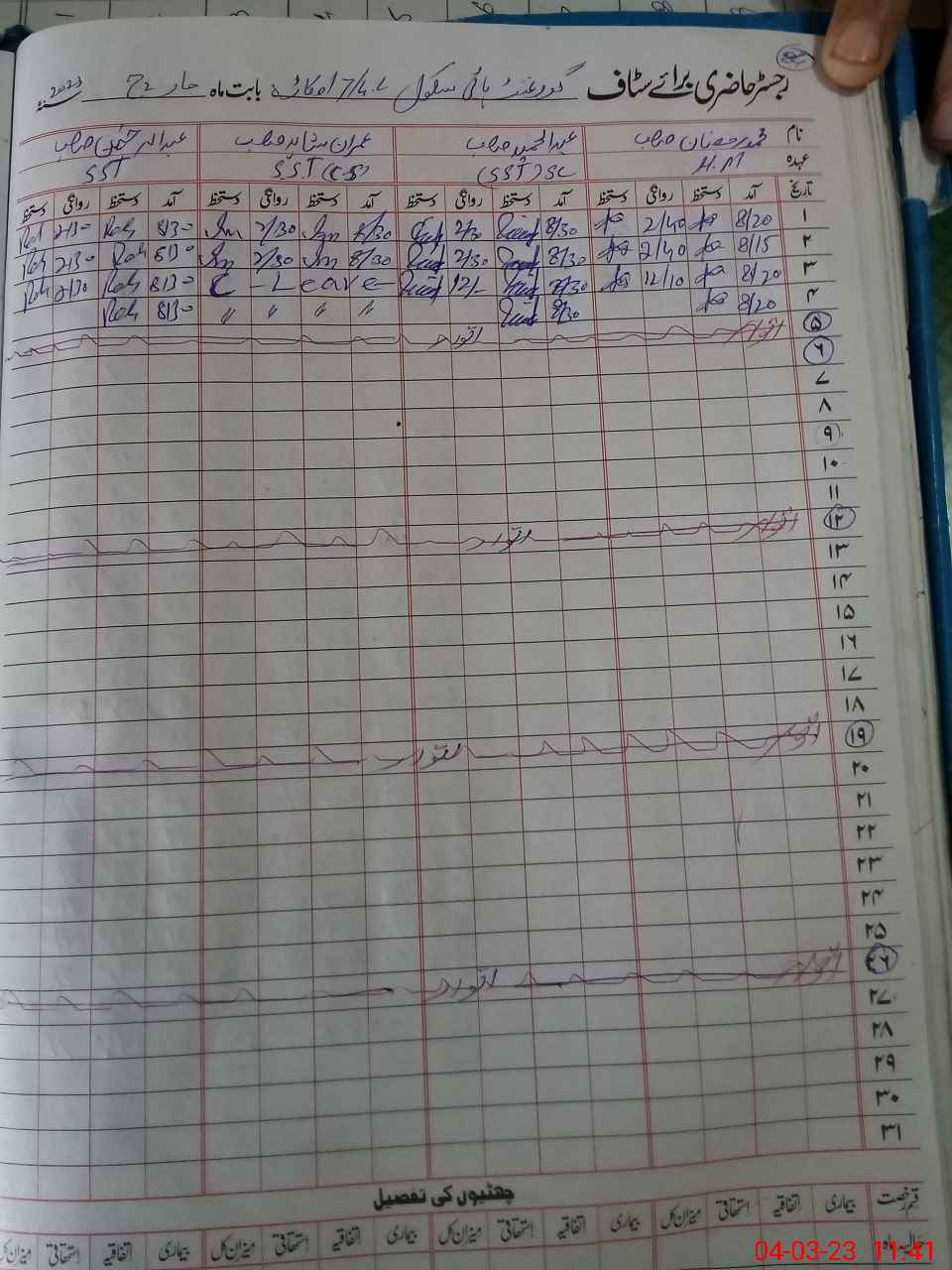 | CNIC | Full Name | Designation | R/C | Absence During Last Calender Month |