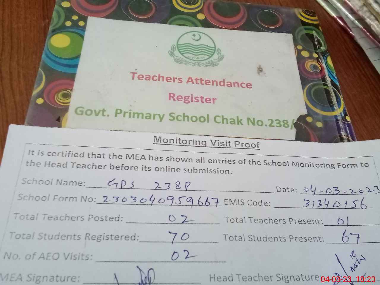 | EMIS Code: 31340156 | Name of School: GPS CHAK NO 238-P | |||