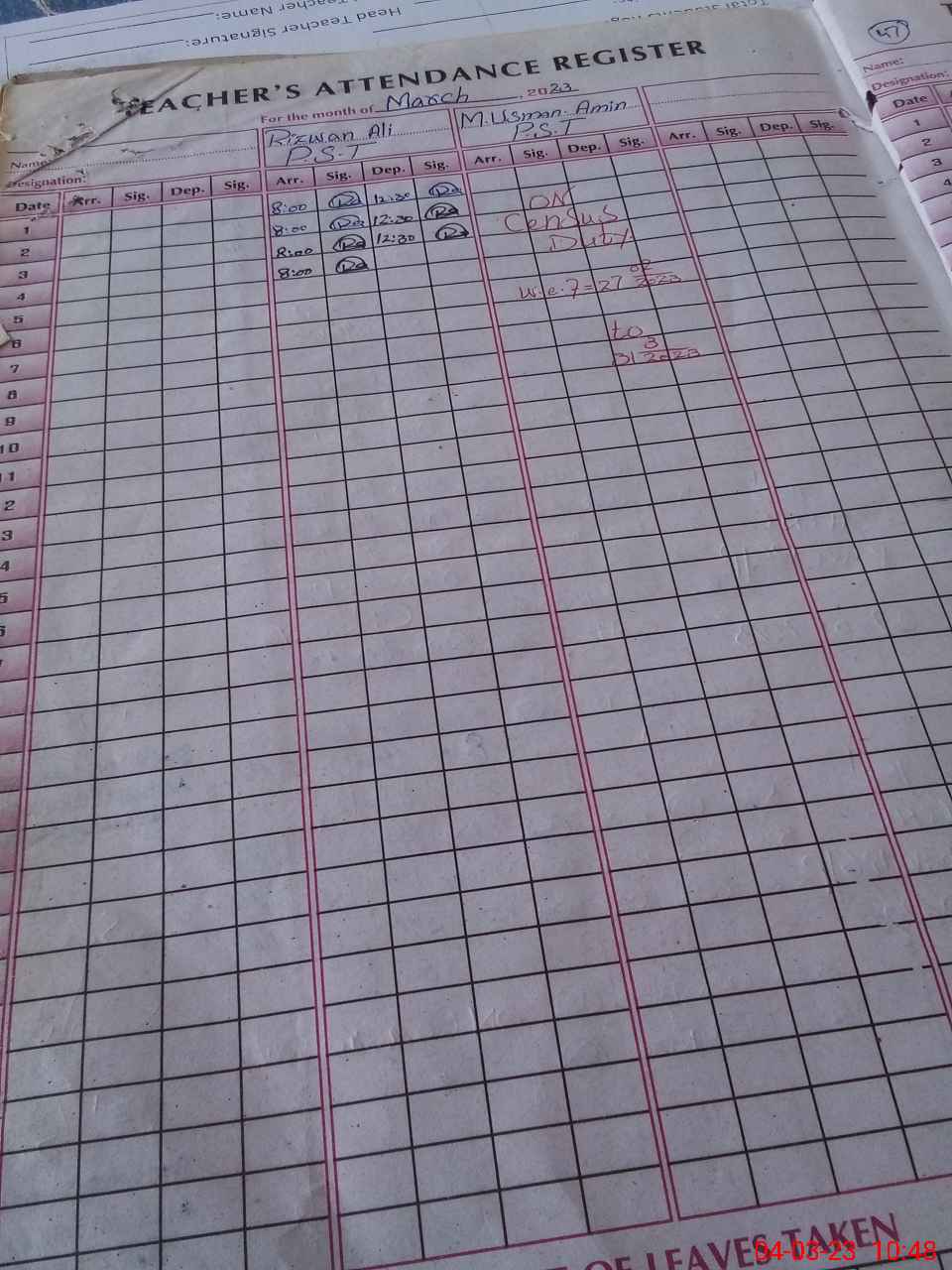 | Name: Ri**** Al**** Designation: (School Headmaster's/Headmistress's) PST Phone/Cell Number: 03**** |