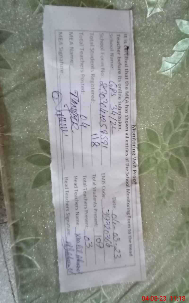 | EMIS Code: 39320364 | Name of School: GPS CHAK 34/2-L | |||