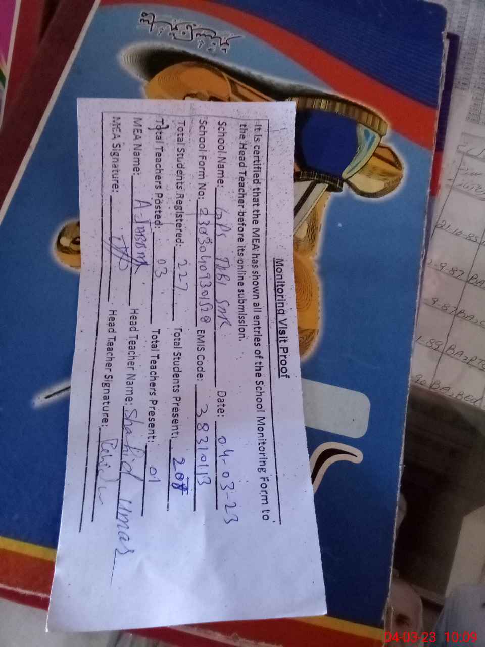 | Certified that this School was Inspected by the Undersigned MEA/DMO Today and the Information Stated Above is as Per Record. | |||||