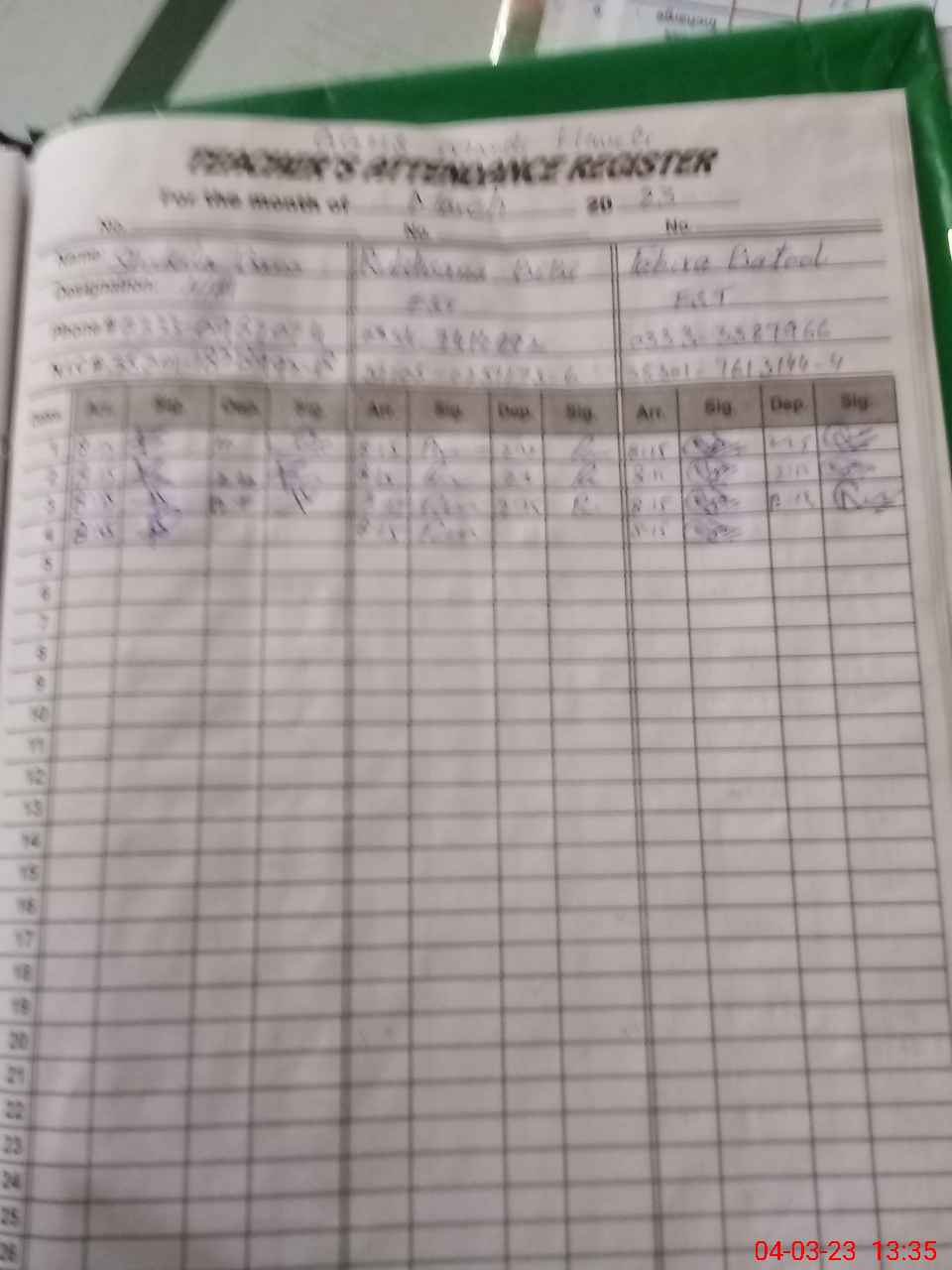 | Name: Sh**** Ah**** Designation: (School Headmaster's/Headmistress's) HM Phone/Cell Number: 03**** |