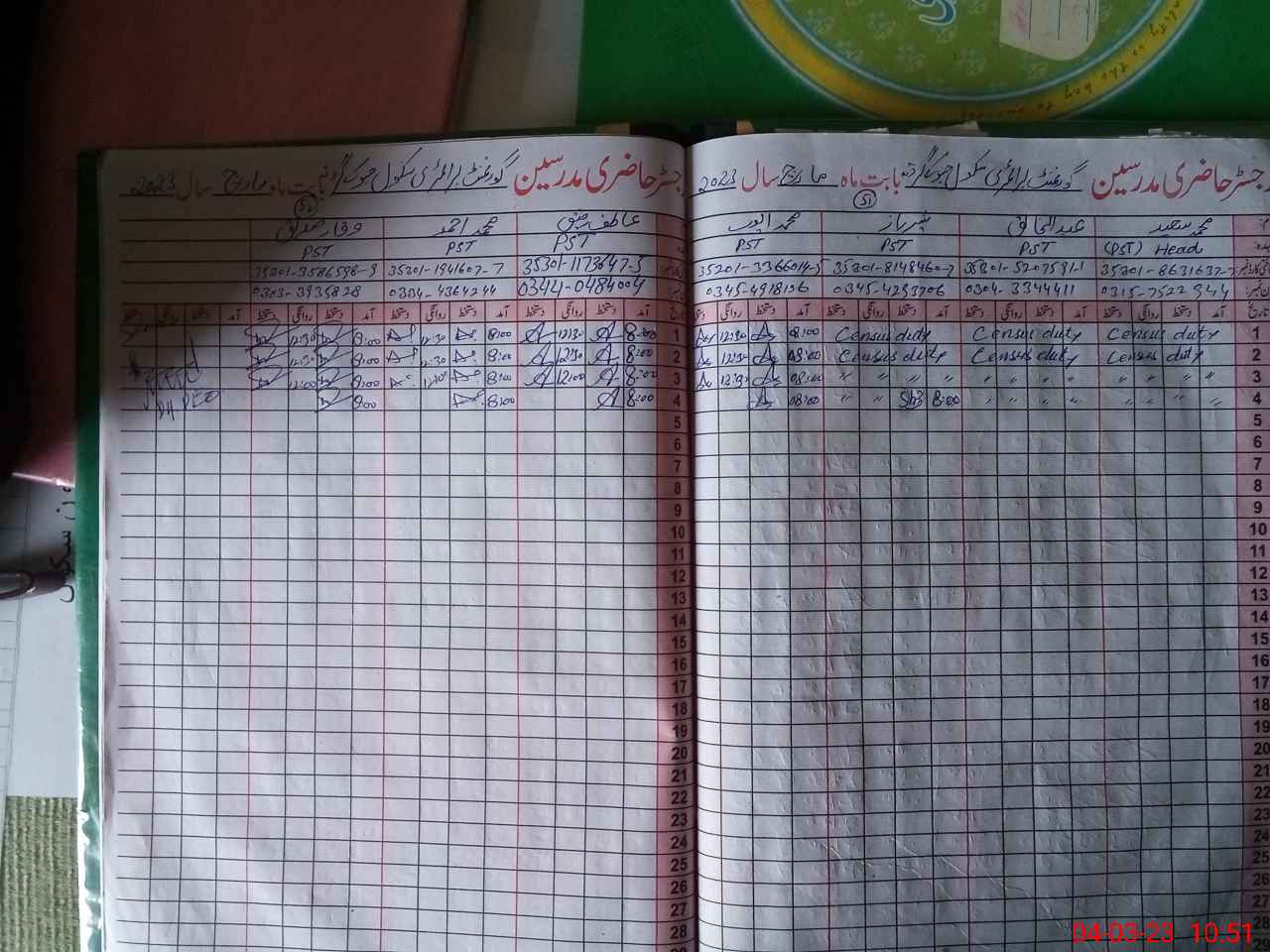 | Name: MU**** SA**** Designation: (School Headmaster's/Headmistress's) PST Phone/Cell Number: 03**** |