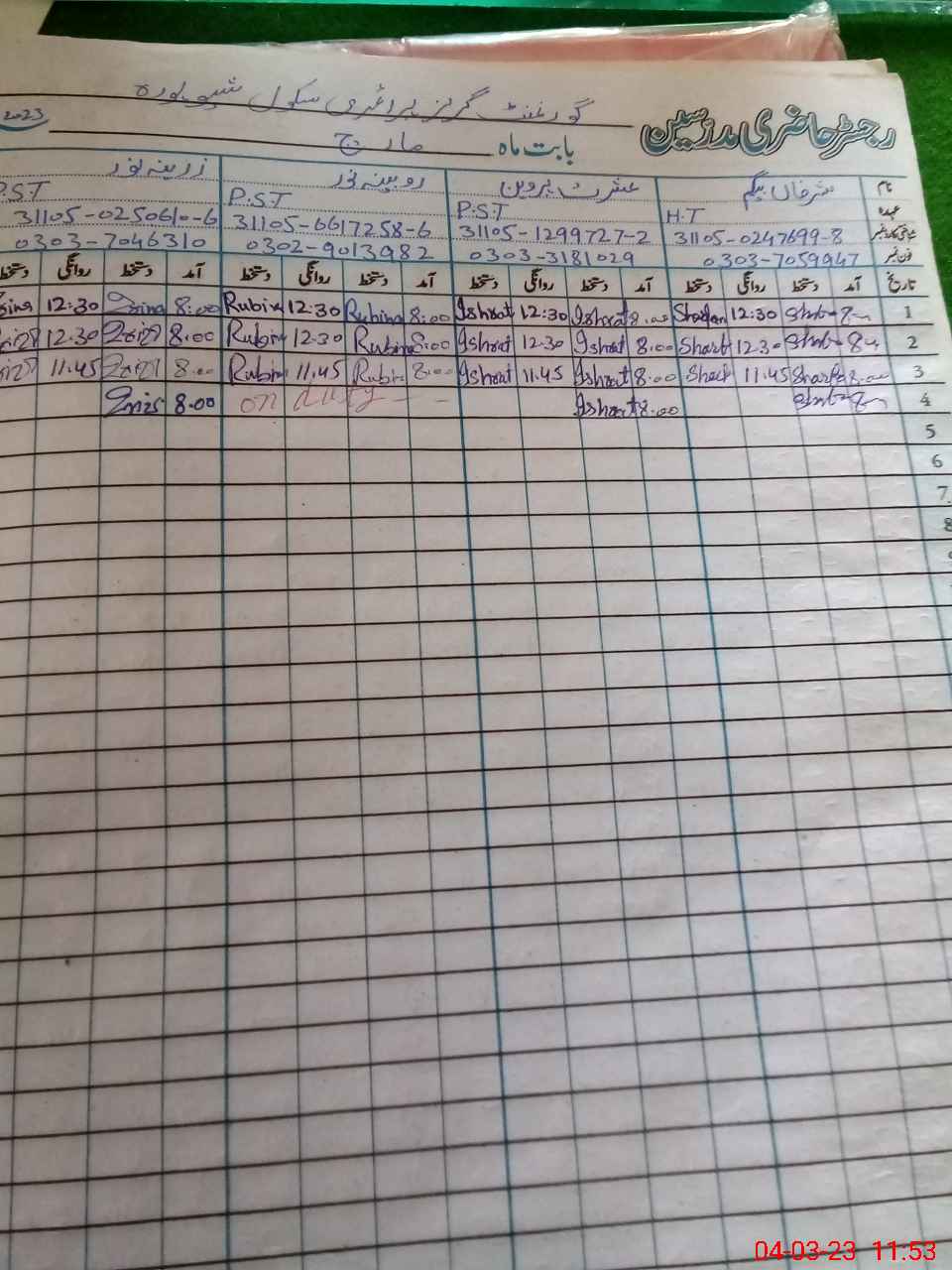 | Name: Es**** Pe**** Designation: (School Headmaster's/Headmistress's) PST Phone/Cell Number: 03**** |