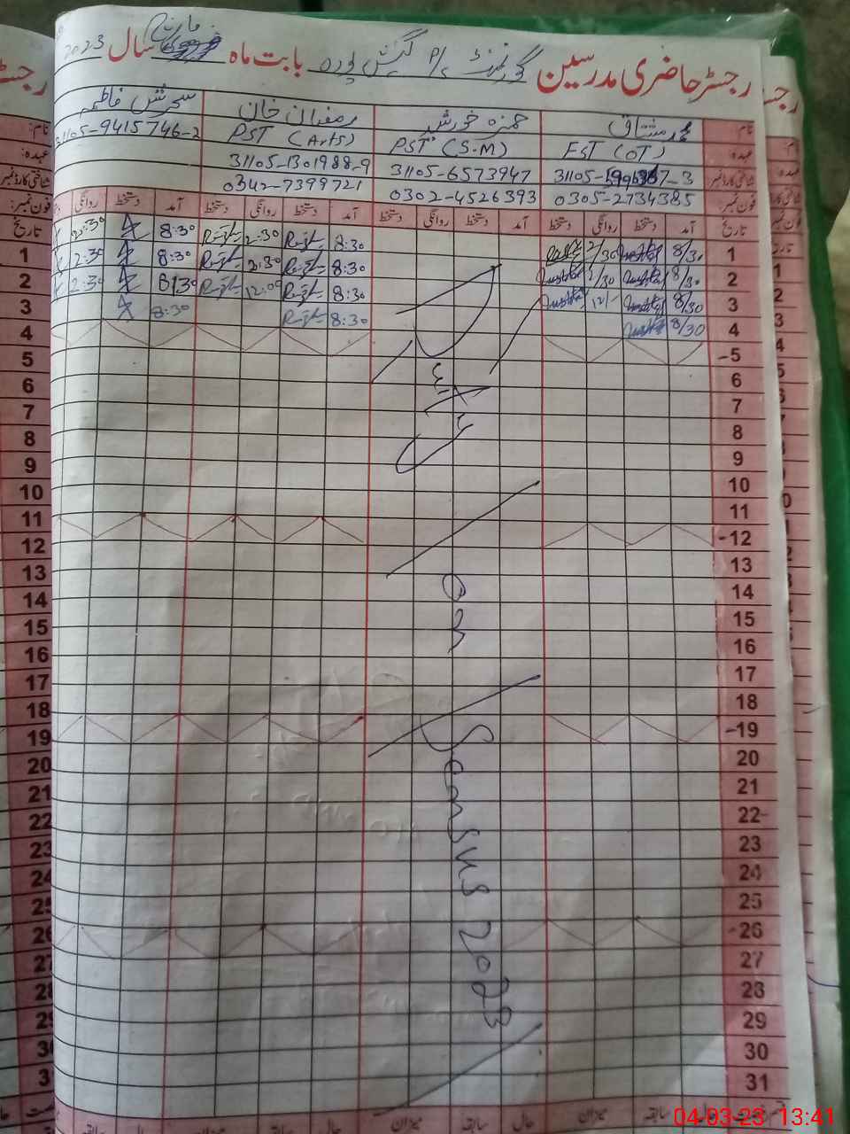 | Name: Mu**** Mu**** Designation: (School Headmaster's/Headmistress's) EST ( OT) Phone/Cell Number: 03**** |
