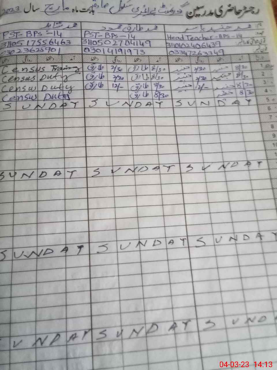 | Name: Ar**** Ak**** Designation: (School Headmaster's/Headmistress's) PST Phone/Cell Number: 03**** |