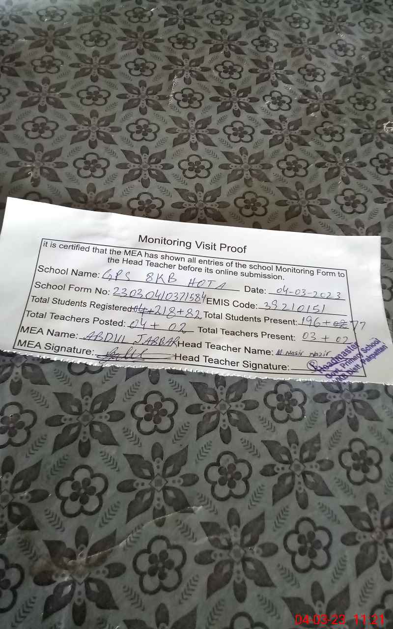 | EMIS Code: 39210151 | Name of School: GPS 8 KB HOTA | |||
