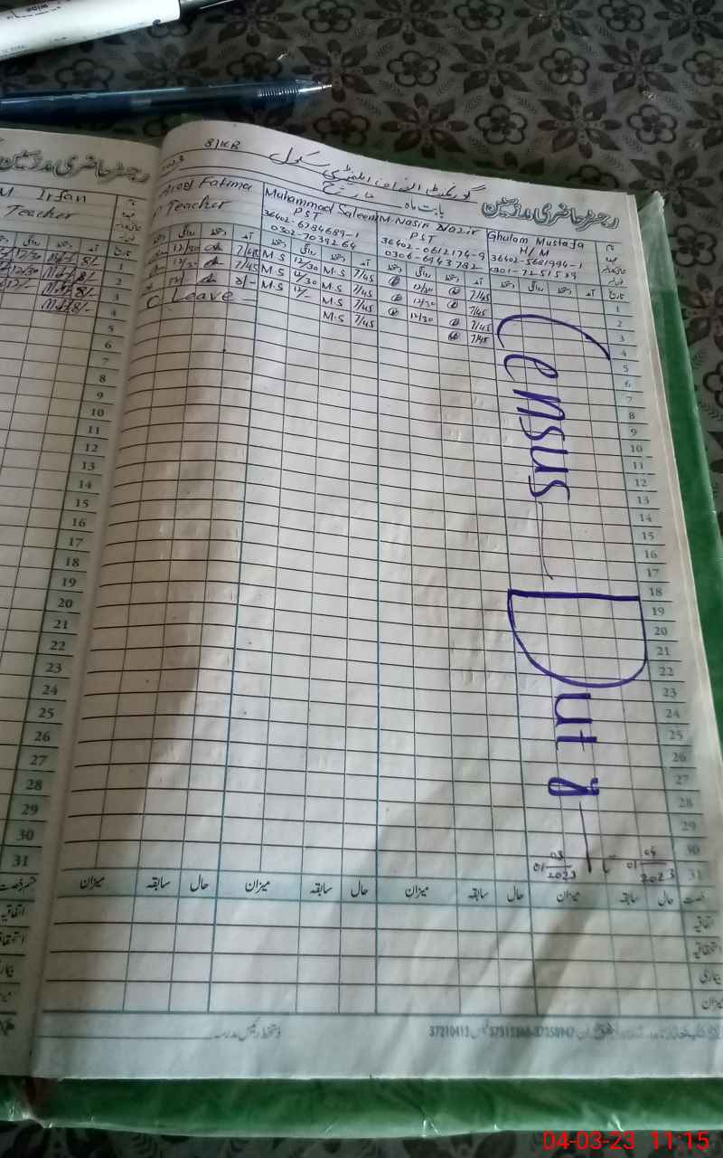 | Name: GH**** MU**** Designation: (School Headmaster's/Headmistress's) PST Phone/Cell Number: 03**** |