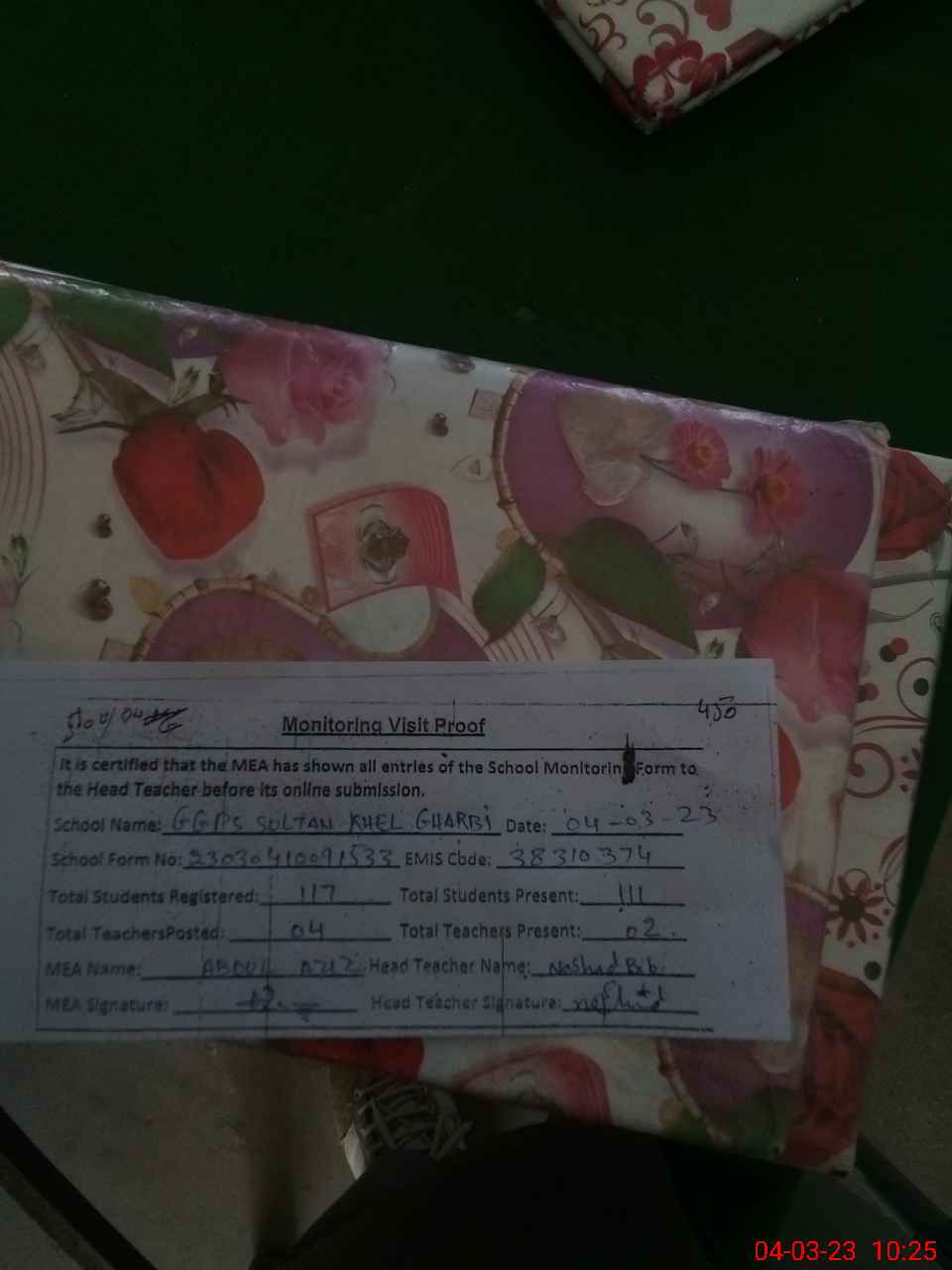 | EMIS Code: 38310374 | Name of School: GGPS SULTAN KHEL GHARBI | |||