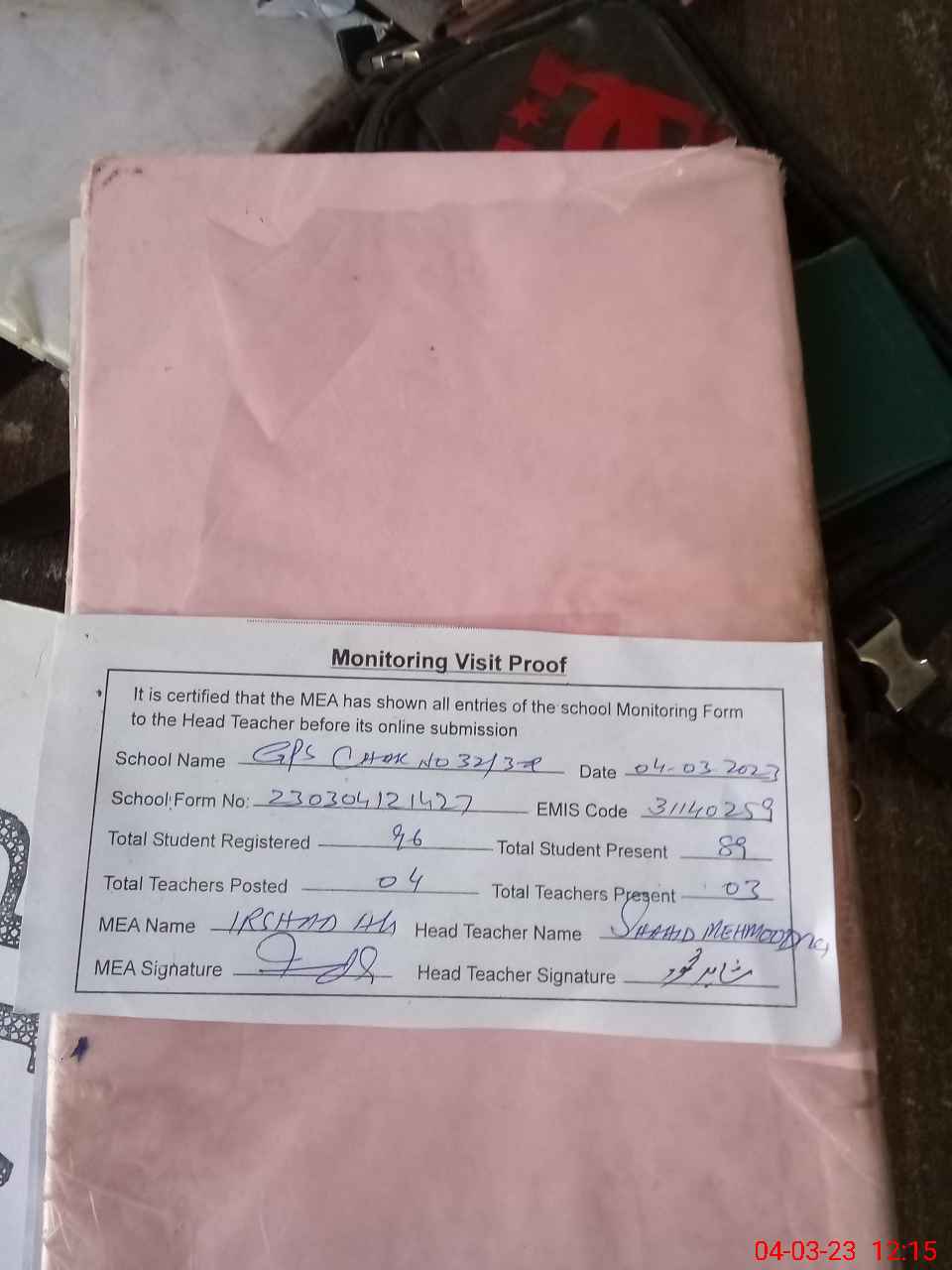 | EMIS Code: 31140259 | Name of School: GPS CHAK NO.32/3-R | |||