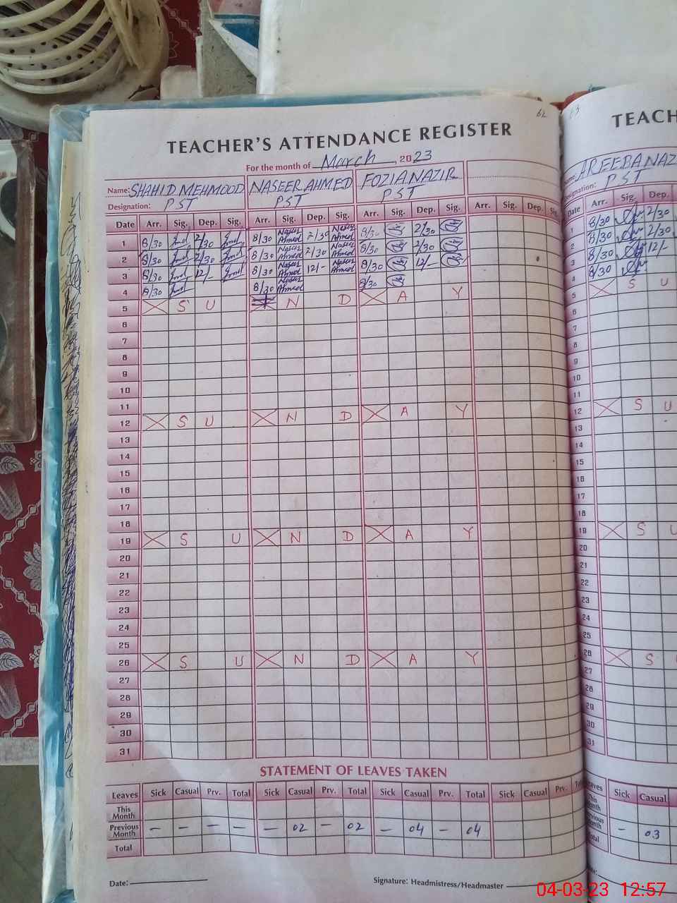 | Leave | Duty | Absent | Maternity | Medical | Ex- Pak |