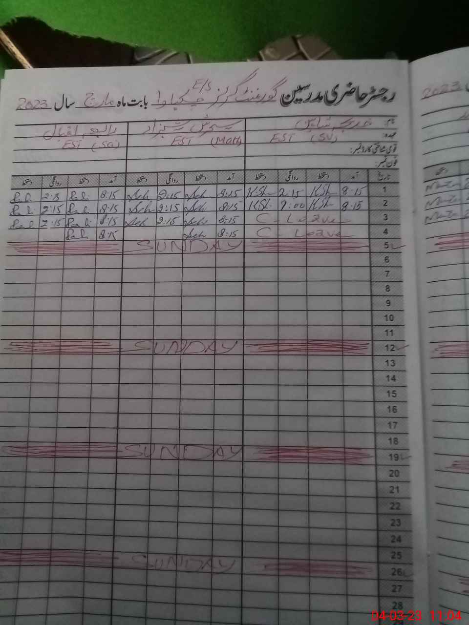 | Leave | Duty | Absent | Maternity | Medical | Ex- Pak |
