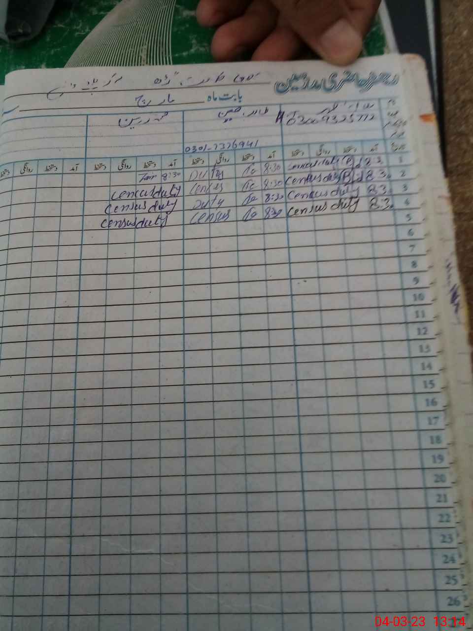 | CNIC | Full Name | Designation | R/C | Absence During Last Calender Month |