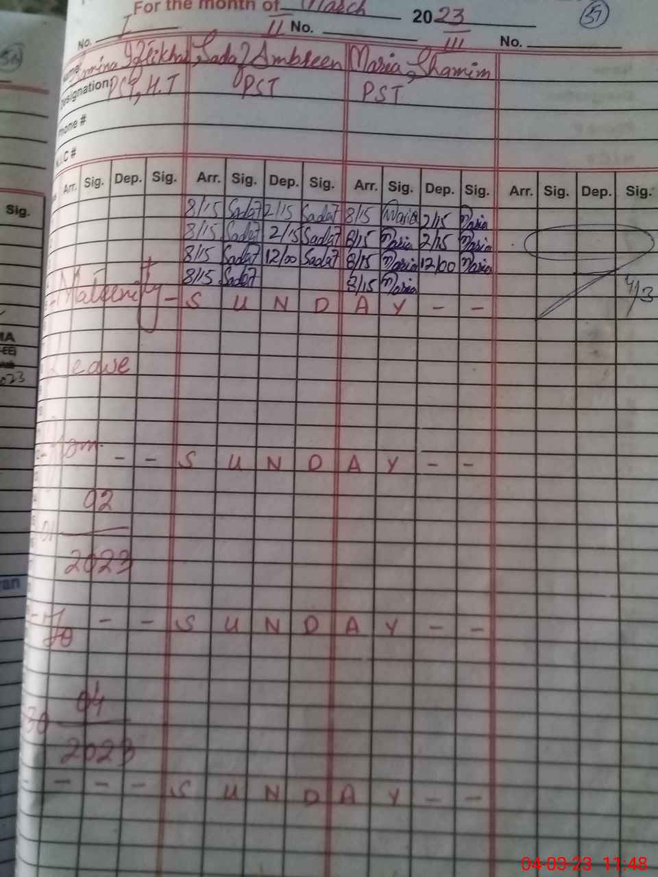 | 37**** | Sa**** If**** | PST | Regular | 28 | 0 | 0 | 28 | 0 | 0 | 0 | 0 | 0 | Maternity |