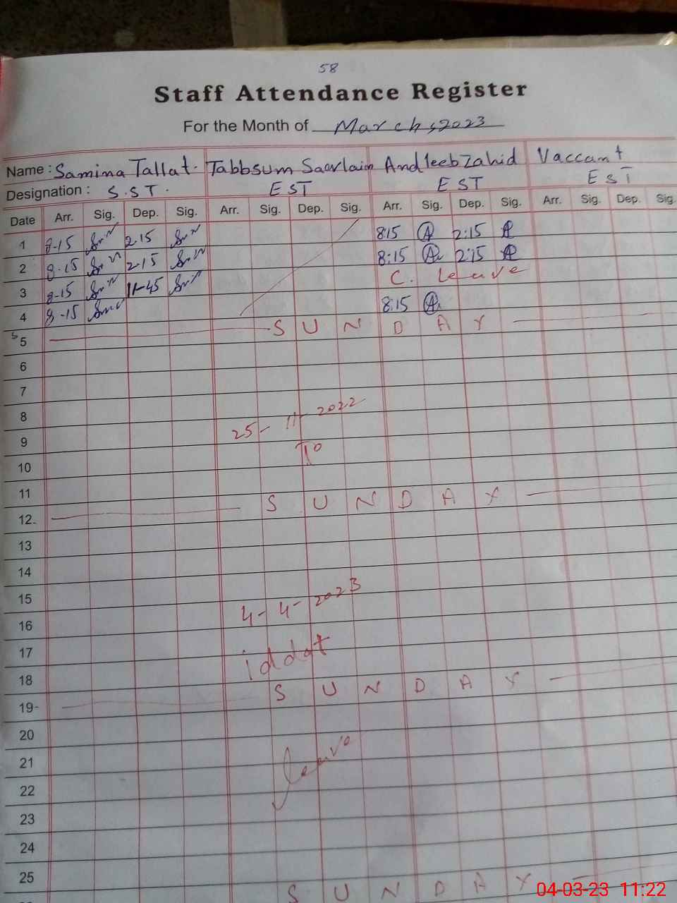 | Name: Sa**** Ta**** Designation: (School Headmaster's/Headmistress's) S.S.T.( GEN Phone/Cell Number: 03**** |