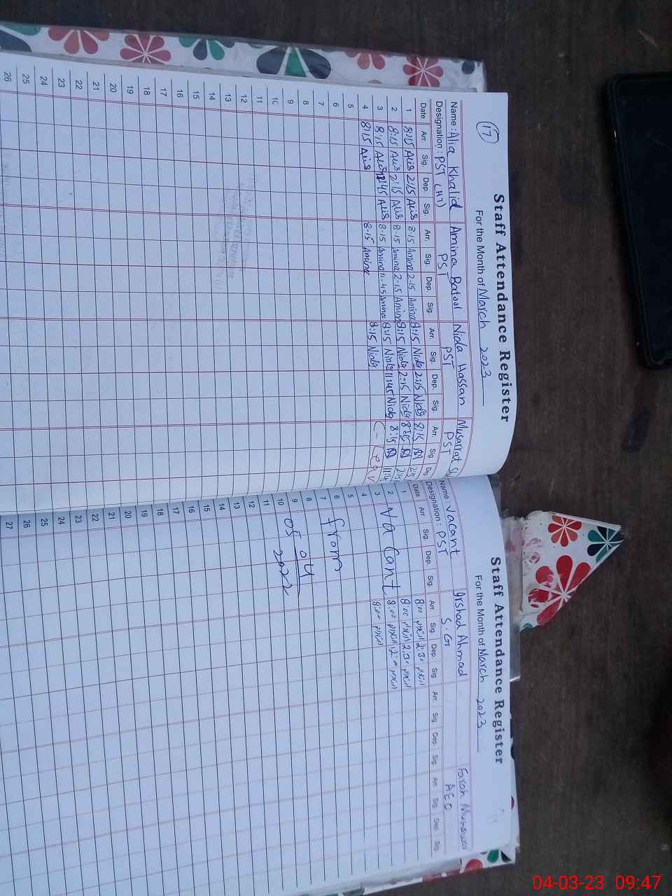 | Name: Al**** Kh**** Designation: (School Headmaster's/Headmistress's) PST Phone/Cell Number: 03**** |