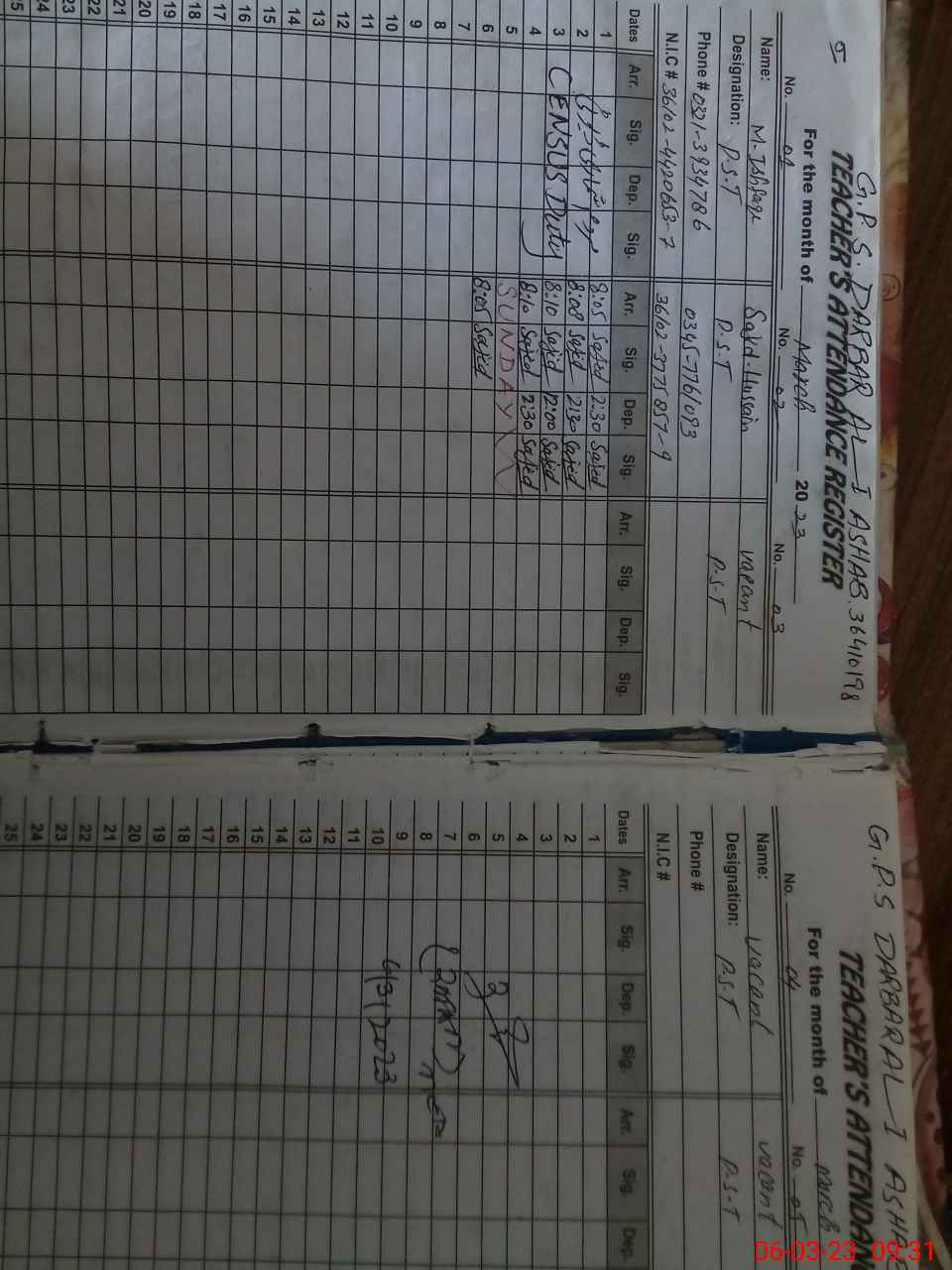 | Name: Mu**** Is**** Designation: (School Headmaster's/Headmistress's) PST Phone/Cell Number: 03**** |
