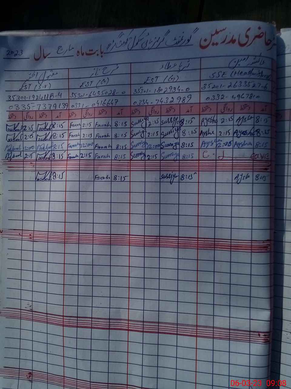 | Name: AY**** AM**** Designation: (School Headmaster's/Headmistress's) S.S.T. Phone/Cell Number: 03**** |