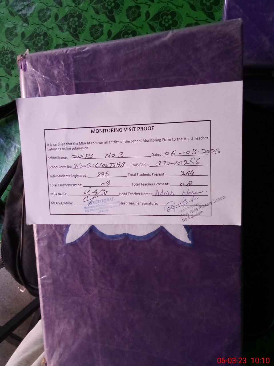 | EMIS Code: 37210256 | Name of School: GGPS NO. 3 JEHLUM | |||